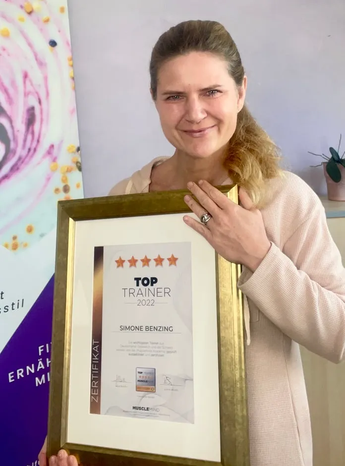 Simone Benzing ist studierte Sportwissenschaftlerin, erfahrene Coachin und zertifizierte Top Trainerin der Musclemind Academy. Die Auszeichnung erhalten jährlich nur wenige Trainer im deutschsprachigen Raum – für exzellente Betreuung und nachhaltige Ergebnisse.